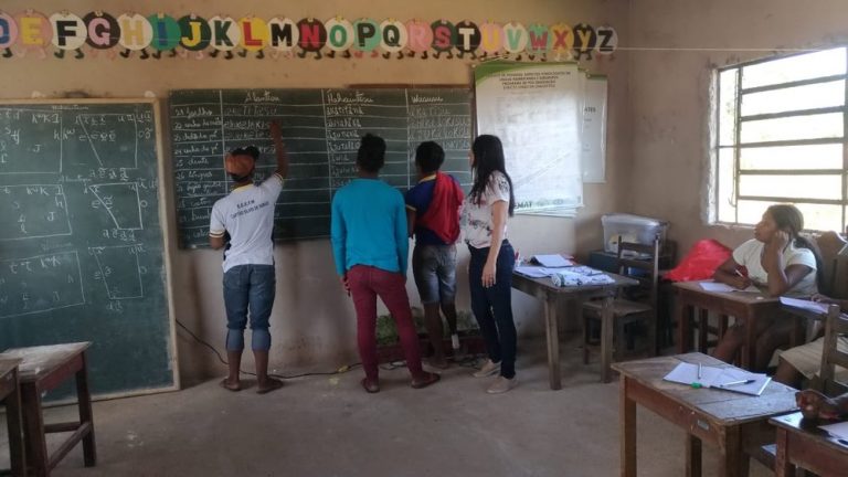 Professores ajudam indígenas que aprendem a ler e a escrever em português a manterem a língua nativa Nambikwara